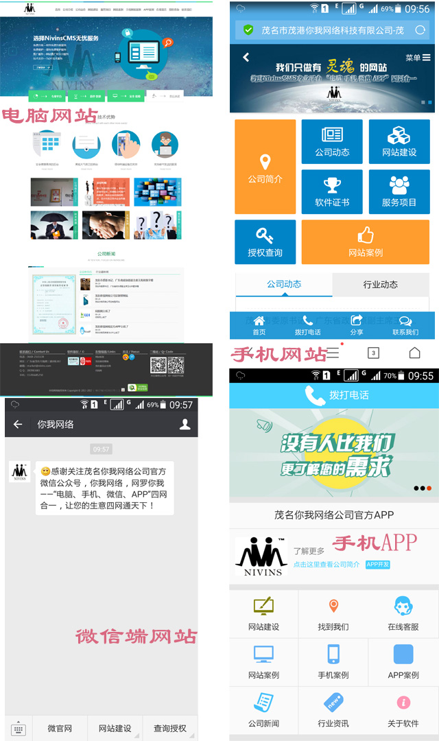 茂名你我網(wǎng)絡公司開發(fā)的四合一網(wǎng)絡平臺是指以手機、電腦、微信號、移動應用為一體,使得統(tǒng)一后臺、統(tǒng)一網(wǎng)址、統(tǒng)一數(shù)據(jù)庫、同步更新的網(wǎng)絡平臺。