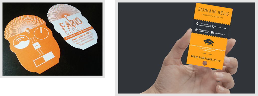 用質(zhì)地較硬的材料制成凹陷或隆起的中間版,通過(guò)凸版機(jī)械加工或凹陷或隆起的立體效果,使名片更具有視覺審美效果。通常有無(wú)色凹凸,印色凹凸等。