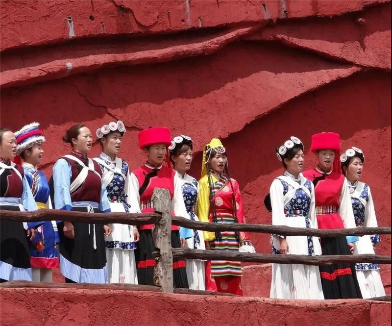 而更加震撼的是,全場(chǎng)沒(méi)有一個(gè)專業(yè)演員,在你眼前呈現(xiàn)的每一個(gè)演員都是來(lái)自本地、皮膚黝黑的原住民。這里沒(méi)有燈光、沒(méi)有舞美,在蔚藍(lán)的天空下他們唱著自己的歌,跳著自己的舞訴說(shuō)著自己的故事,讓你感受到來(lái)自少數(shù)民族的粗獷、原生態(tài)和質(zhì)樸,把最真實(shí)的麗江印象帶給來(lái)到這里的每一個(gè)人。