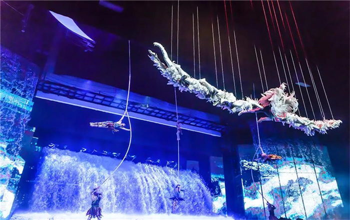 其中最讓人深刻的便是聲光電高科技手段的呈現(xiàn),它運(yùn)用到了360度全景劇幕、水中垂直升降大搖臂、350平水舞臺(tái)、400 平具有分屏錯(cuò)屏功能的LED屏、大型月亮裝置、雪山機(jī)械模型等超過(guò)30種先進(jìn)舞臺(tái)技術(shù)與道具裝置,呈現(xiàn)如夢(mèng)似幻的感官體驗(yàn),完全打破了藝術(shù)類型的界限,讓每個(gè)角落都充滿藝術(shù)的張力,震撼觀眾的視覺(jué)、聽(tīng)覺(jué)神經(jīng),享受到一場(chǎng)超越時(shí)空、突破極限的視覺(jué)盛宴與夢(mèng)境之旅。是到麗江不可錯(cuò)過(guò)的文化大餐,一生必看的演出。