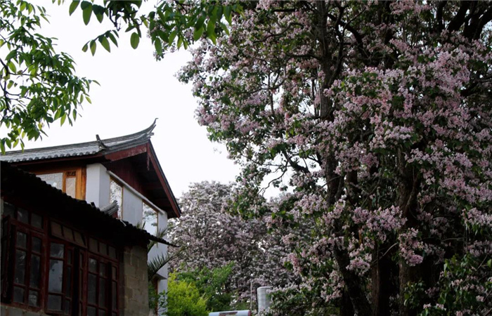 或許是因為麗江本就是一個花多的城市,又或者是因為楸樹挺拔,高的無法讓人近距離觸摸,吉慶路的楸木花并沒有引來過多人的駐足。但當你走在楸樹下時,會不禁為它的美停留。