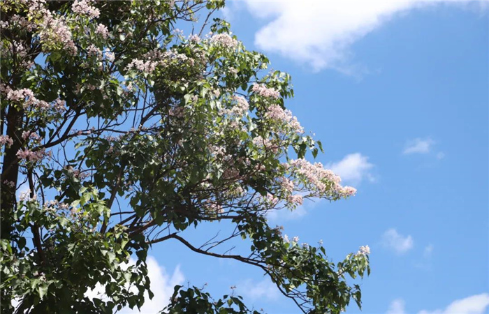 如果,清晨打開窗,就能聞到一樹的芬芳。我想,我會醉倒在每一個清晨里。位于古城區(qū)祥和領域小區(qū)。楸木花開在了住戶們的樓下,近在咫尺的繁花,照亮每一天的初始。