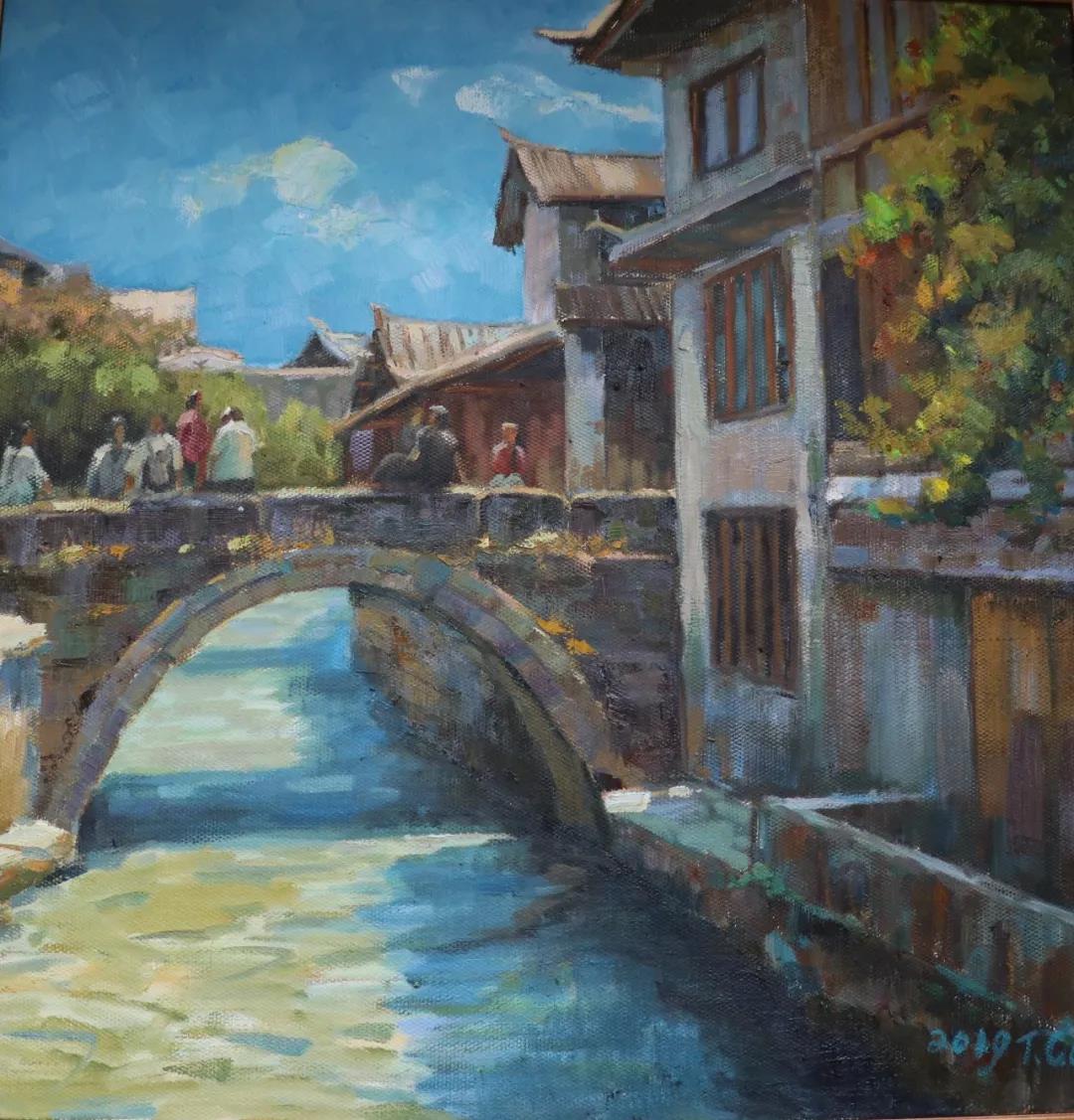“每天走的都是同一條路,但看到景卻不同的?!碧談傉f,有陽光灑下的地方不是一成不變的,像古城的街道、橋梁、河流,隨著時間推移它們所呈現(xiàn)出來的美也不盡相同,讓他有著強烈的愿望把它們畫下來。