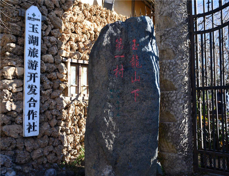 玉湖村就坐落在玉龍雪山腳下,從白沙古鎮(zhèn)開車過去10多分就可以到,公交17路和6路也可以到玉湖村廣場。如今的玉湖村也有一定程度的旅游開發(fā),好在并不嚴(yán)重,依然保持著最初的風(fēng)貌,在玉湖村廣場旁可以看到這塊石碑,石碑上刻有“玉龍山下第一村”七個(gè)大字。關(guān)于玉湖村的建村歷史,并沒有太多的記載,但它的歷史絕對比白沙古鎮(zhèn)更為悠久,據(jù)說早在明代時(shí),木氏先祖就在此開挖人工湖、興建避暑夏宮、養(yǎng)鹿場等,而最早生活在這里的人正是為納西王護(hù)宮養(yǎng)鹿的人,為木氏先祖的發(fā)源地之一,在許多納西民歌中也經(jīng)常提到這里的玉湖和雪山鹿場。