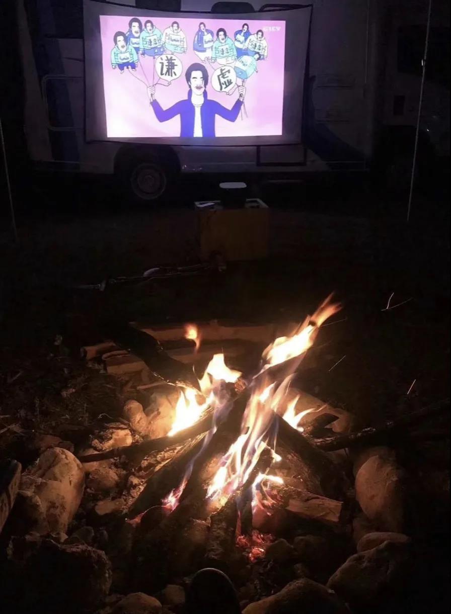 要說篝火和什么最搭配,當(dāng)然是露天電影啦!圍著篝火,找一個靠背椅,溫暖舒適,伙伴們看起露天電影來。