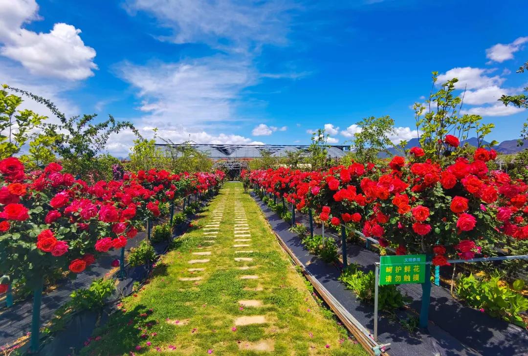 遠遠望去,七河玫瑰小鎮(zhèn)那些五彩斑斕的房子也像是綻放在田地間的各色花朵。當(dāng)你走近村落,玫瑰花的香味便撲鼻而來,鮮紅的玫瑰花在田間次第開放,連成了大片花海。