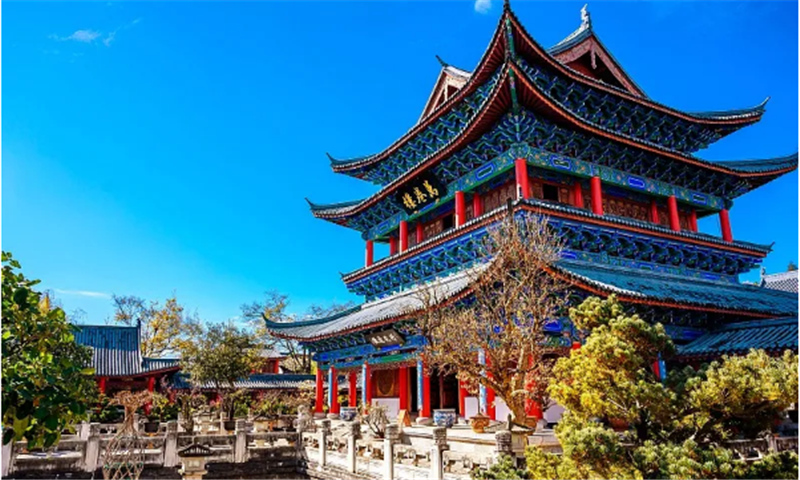 木府位于古城南部,是歷代麗江木氏土司的府邸。整座建筑融合了明代中原建筑風(fēng)格和白族、納西族的工藝。徐霞客曾贊譽(yù)“宮室之麗,擬于王者”。