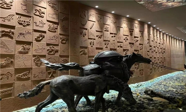 這里有“唯一活著的象形文字”——東巴象形文字墻。其長33米,高2.5米,東巴文單字700余個,共分為9大類別。東巴文是納西東巴所使用的一種民族文字,是世界記憶遺產(chǎn),被譽為世界上現(xiàn)存的“唯一活著的象形文字”。