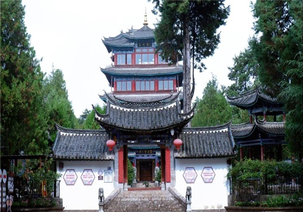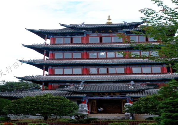 樓邊13個飛檐翹角,寓意為玉龍雪山十三峰;