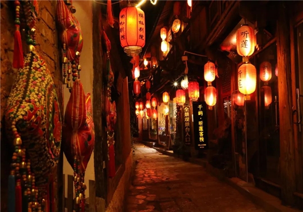 束河的美自然無需多言只在街巷上漫步游走看看清幽的街巷也會心生歡喜,夜幕降臨華燈初上束河古鎮(zhèn)。