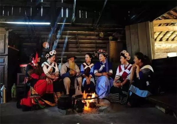 再去聆聽一場悠揚古老的納西古樂表演,曲藝悠揚,倍感憂傷,一唱一和之間,竟已挑動情緒,久久不能忘懷。旖旎風光,無限流連千百間,風卷云舒,納西族人心中圣潔的玉龍雪山,泊泊流淌出的冰雪之水,融進玉水寨中。水生萬物,玉水寨的水仿佛具有靈性,那玉水流淌的聲音,也好似音符在跳動,清悅悠揚。偌大的一股泉水順著山坡而下,折成三疊水。人們稱第一疊為“出龍瀑”,第二疊為“戲龍瀑”,第三疊為“送龍瀑”,神龍三疊水的美名便得于此。成串的瀑布飛流而下,水汽陰霾,朦朦朧朧的,像是一個剛剛出浴的仙女捧著紗巾,游魚嬉鬧在她左右,歡喜跳動,歡呼雀躍。寨門口立著尊人身蛇身的金色塑像,是玉水寨的標志性建筑,納西語叫“署”,神像背后有兩顆黃葉五角楓,樹下一眼神泉水,神泉滋養(yǎng)著古樹,古樹護衛(wèi)著神泉。這里有納西族傳統(tǒng)家庭院落,錯落有致的木楞房,依地勢而建。面容安詳?shù)睦先酸勚?,滿屋子酒味飄香;圍坐火塘邊,聽著壺水“咕嚕咕?!钡捻懧暎b看山水,把酒言歡,滿懷安寧。
