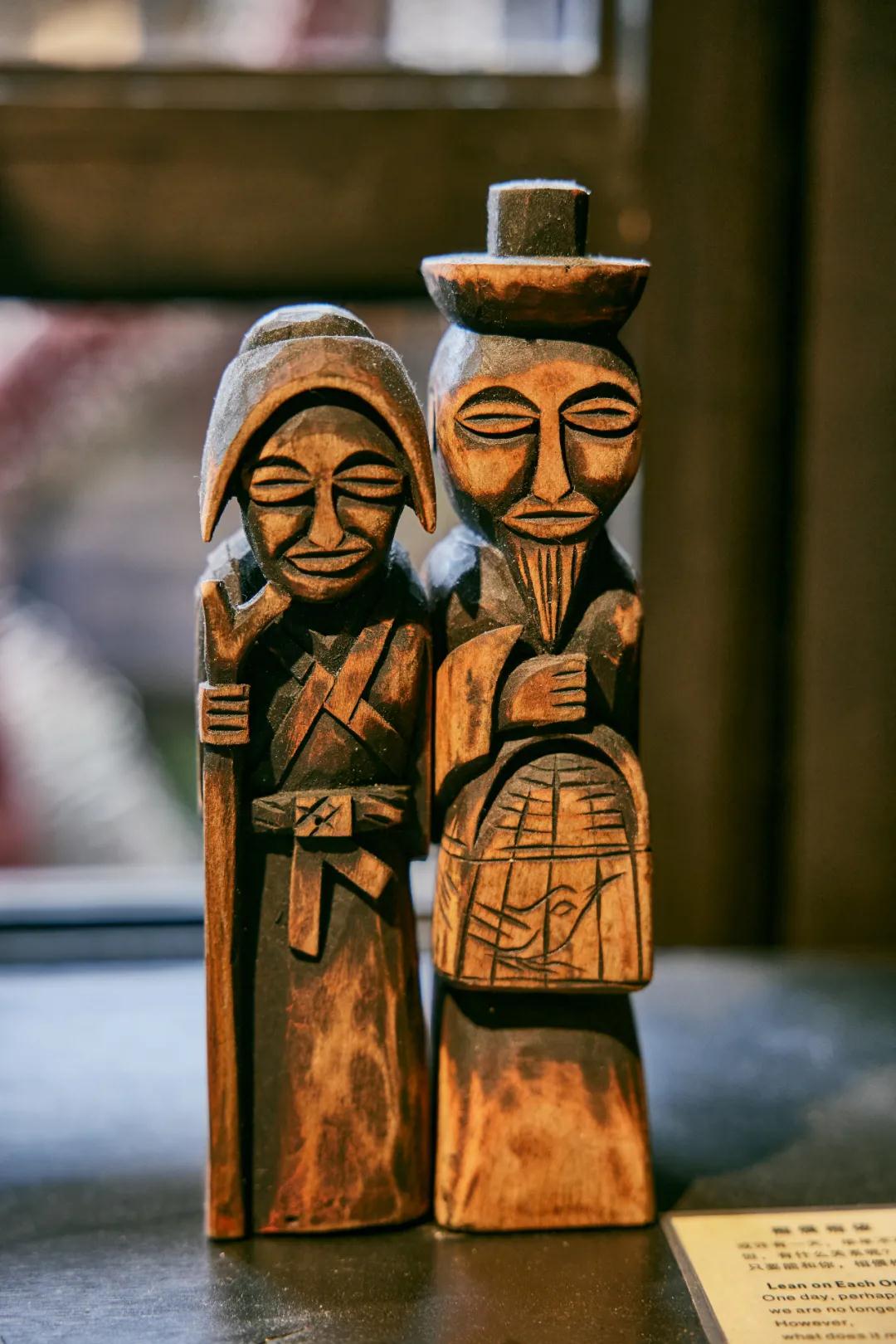 在追夢(mèng)的路上,雖然中間也經(jīng)歷了一些波折,但因?yàn)槟欠莺?jiǎn)單純粹的熱愛,一切順理成章又回到了最初的美好。山有木兮,為愛而塑,如今的老木藝術(shù)空間是老木和愛人阿俊在古城里為木頭尋的一個(gè)家。老木似木而不“木”,愛和東巴文化的滋養(yǎng),讓他的木雕作品充滿靈性,古樸粗獷、天真放達(dá),透露著一股強(qiáng)勁的生命力。