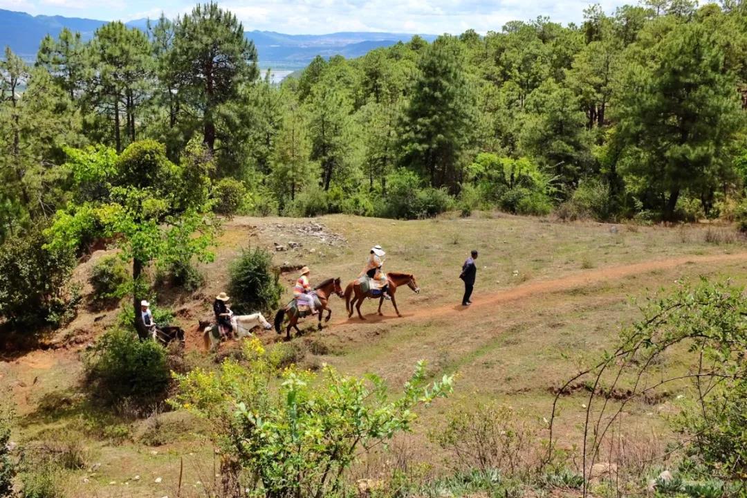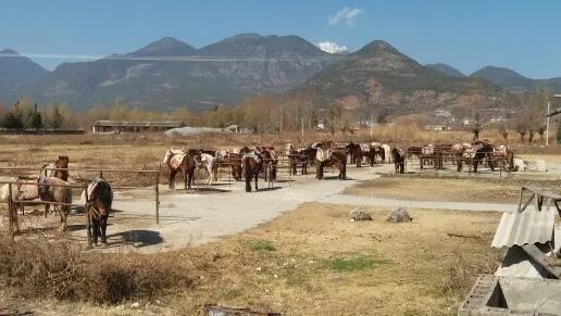 到拉市海的馬場后,在馬夫的帶領下騎馬上山,這段旅程就算是開始了。