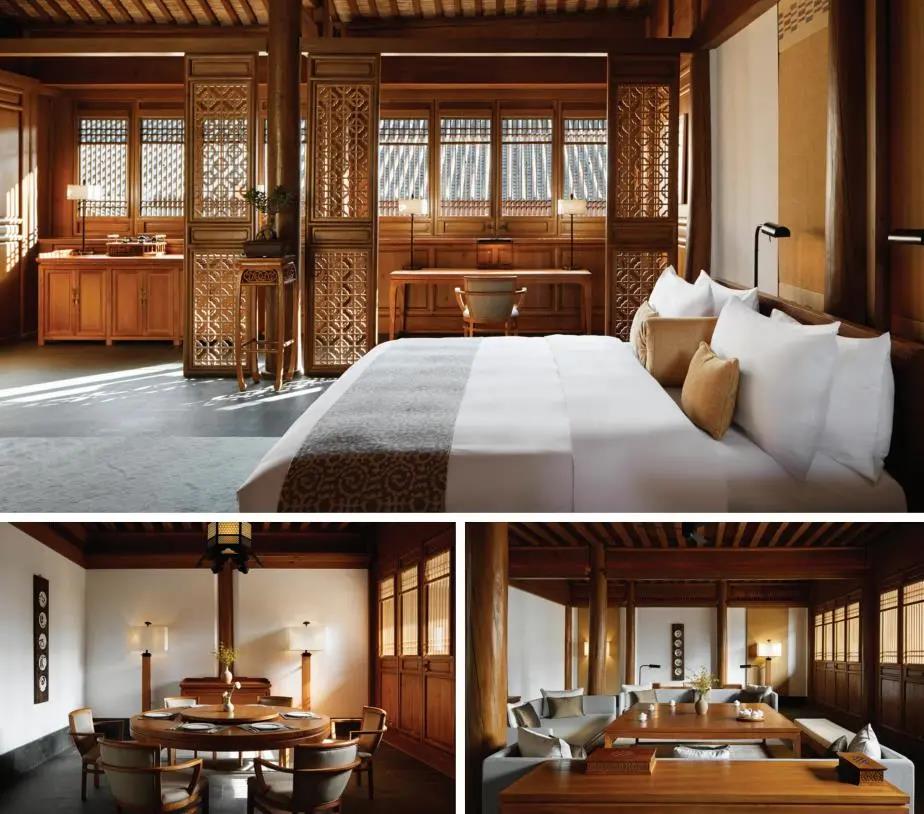 擁有35間套房,以山峰、古城或蔭蔽庭院景致為特色,明清風格家具與設計,飾有精致木雕屏風。19間庭院套房,15間豪華套房,1間大研安縵套房。安縵水療中心環(huán)泳池而建,每間護理室均配有安靜休息區(qū)。酒店還配有健身房、普拉提/瑜伽館、戶外恒溫泳池。