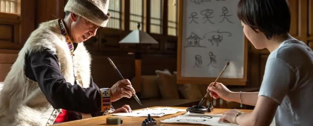 邀請省級非遺傳承人、麗江老東巴為客人講解東巴象形文字的淵源及教授東巴象形文字的書寫,課程結束還將為客人在東巴紙張上親手書寫東巴祝福語作為留念。