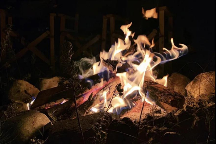 這時當(dāng)?shù)叵驅(qū)О褱?zhǔn)備好的木柴拿了出來,又在旁邊做好了安全措施,準(zhǔn)備在營地給我們弄一個篝火晚會??粗窕鹩梢粋€火光開始,逐漸被火焰包裹,燃燒的木柴,開始聽得到“噼里啪啦”的聲響,暖意也上來了。一群人漸漸向火堆聚集,放著音樂,開始一場“大型蹦迪”晚會!