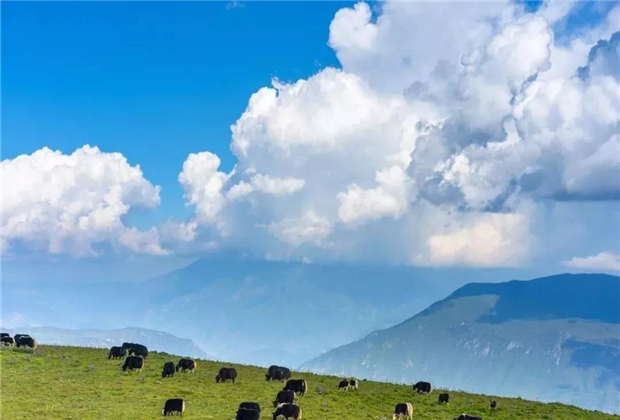 遠(yuǎn)處牛馬成群吃草,鳥兒越過天際傳來陣陣鳴叫,一派生機(jī)盎然,令人心醉。