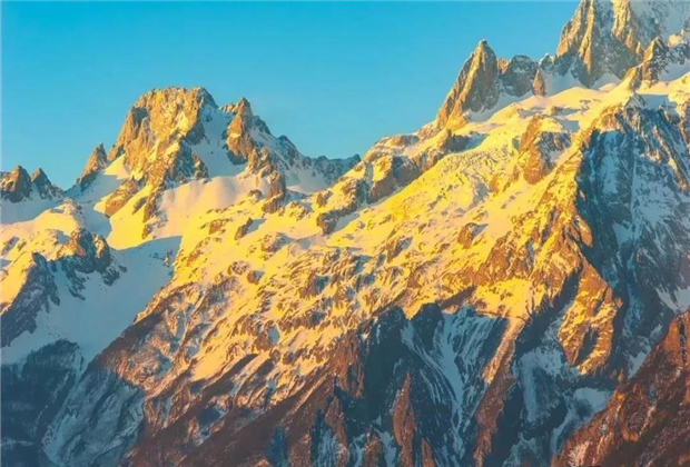 雪山上常年覆雪,冰峰閃爍,莊嚴(yán)且肅穆,每一個(gè)來麗江的人都能一睹它的尊容、它的艷麗,讓人感嘆的同時(shí)又倍感親切。