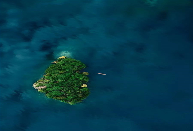 湖中坐擁數(shù)座小島,島上風(fēng)光旖旎,四面環(huán)水,海天一色,湖水廣闊無垠,岸邊群山環(huán)繞,蒼郁蔥蘢。