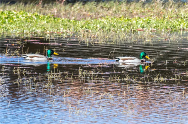 沿著新修建的親水棧道,緩緩走向濕地更深處,兩旁鳥兒的種類和數(shù)量都在逐漸增多。有成群結(jié)隊(duì)的野鴨,也有單獨(dú)行動的白鷺。頭頂不時(shí)有雁群飛過,悠然天地間。讓人便引詩情到碧霄。