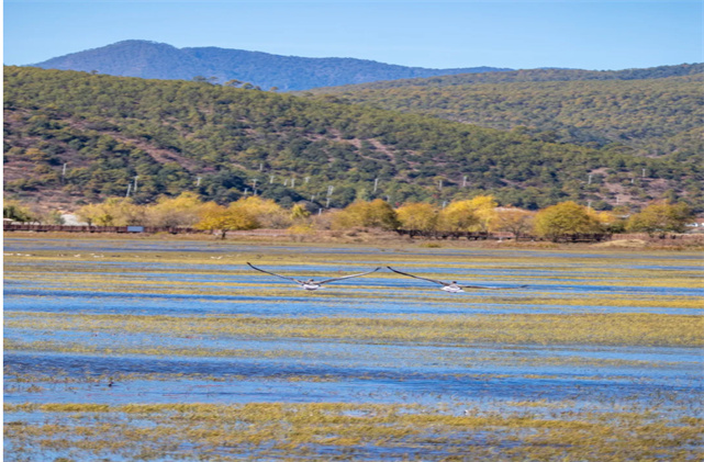 不但鳥多,風(fēng)景也正好看!初冬的拉市,湖光山色,層林盡染,候鳥的倩影點(diǎn)綴其間,相映成韻。目光所及,皆是詩畫。