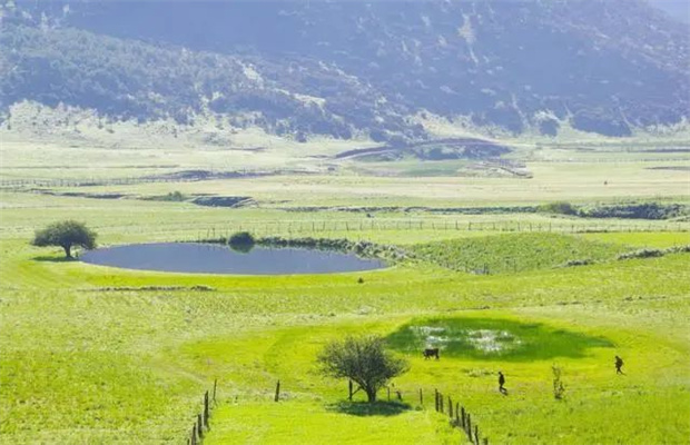 在壩子深處,溪流和聳起的土地,將草甸分出兩半,一半詩意,一半生活。一側(cè)草野風(fēng)光無限好,一側(cè)是田園豐收正忙。