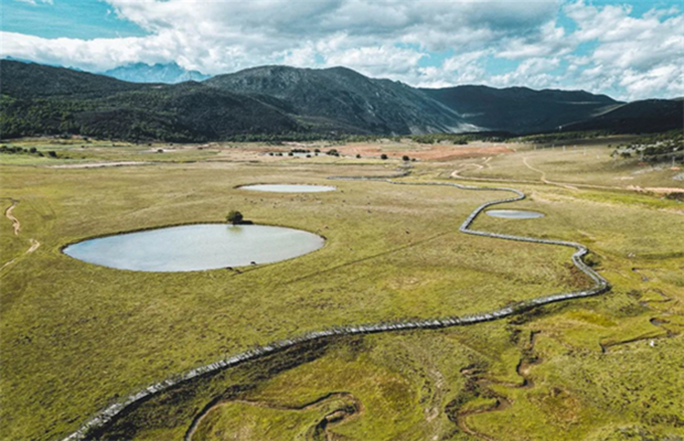 秋冬的九子海是凈朗疏闊的世外君子,那些屬于夏日的驚艷雖已漸漸退場,花兒謝了枝頭正匆匆,草甸著急披上微黃的衣裳。