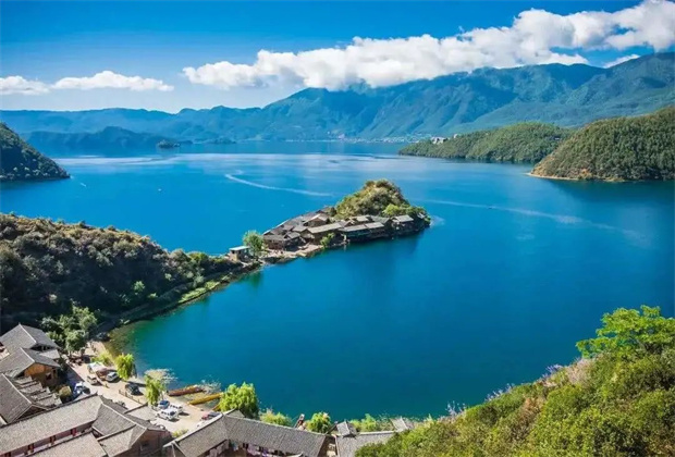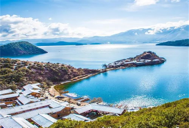 在觀景臺(tái),盡收瀘沽湖風(fēng)景。觀景臺(tái)位于瀘沽湖湖域東岸,登上觀景臺(tái),整個(gè)湖面都盡收眼底,一起構(gòu)成一幅美妙的畫卷。