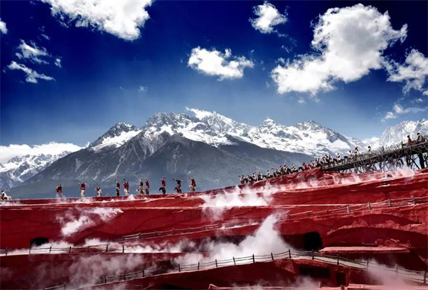 看一次《印象麗江》。原汁原味的少數(shù)民族演出,聽悠揚(yáng)的古樂(lè)飄揚(yáng)在古城上空,看優(yōu)美的身姿在圣潔的雪山前起舞。