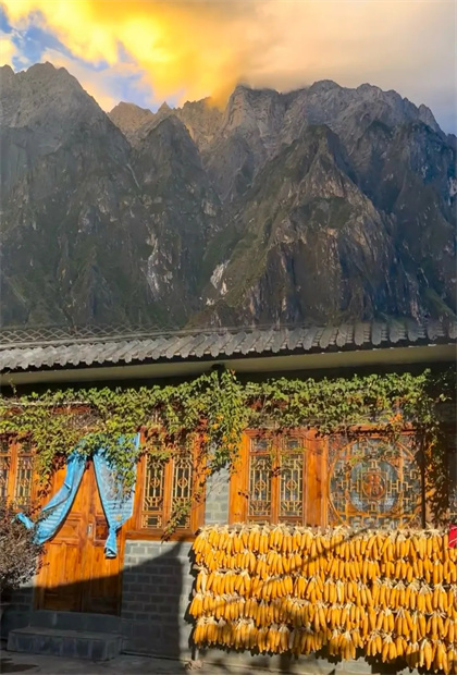 走到此刻,夕陽漸漸低斜,遠處的玉龍雪山山尖上的積雪 變得通紅,山川樹木和眼前的路都浸在一片暮靄之中。這 是虎跳峽最熱門的一個客棧。 在這里,你可以品嘗 咖啡,坐在“爽死你陽臺”上,欣賞遠處雪山在落日的余暉下閃耀金色光芒,這將成為旅途中最愜意的時刻。