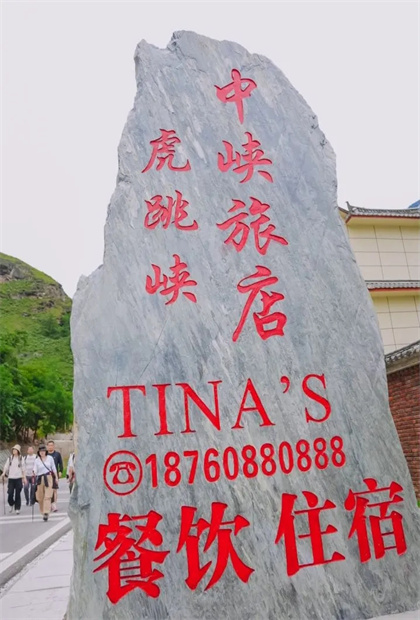 沿著哈巴小路,朝著中峽旅店(Tina’s)方向前進,那里離我們的目的地中虎跳最近。我們走的這一段路程通常被稱為“哈巴小路”,得名大約是由 于這條路是沿著哈巴雪山 一側(cè)的虎跳峽北岸蜿蜒。1998年Tina's中峽青年旅舍開始正式營業(yè),老板與老板娘一人打工,一人守店。營業(yè)之初大部 分客人是外國人,語言不通,溝通不暢,營營役役。于是,有香港客人提議改英文名字。老板娘姓田(tian),遂起名Tina。