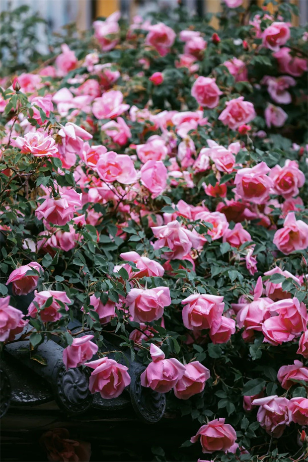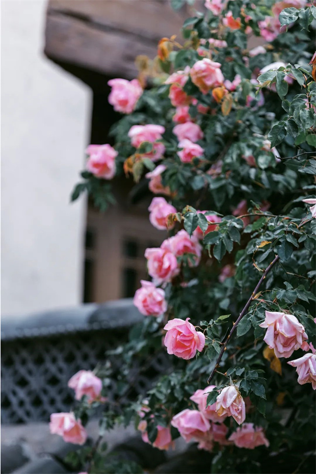 人家的窗欞。那些柔韌的藤蔓,像極了繡娘手中的絲線,將八百年的古城細細縫制成一件粉色的霓裳。曾有位英國園藝
