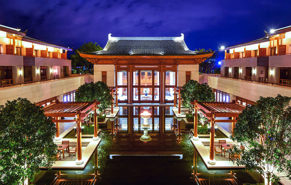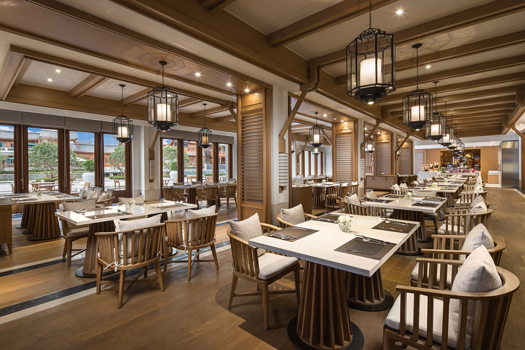 酒店擁有455間風情客房和86棟豪華別墅,設計以云南納西族傳統(tǒng)建筑風格為主,飛檐翹角的瓦屋建筑巧妙融匯了現(xiàn)代時尚元素和納西特色之美,營造了獨具麗江特色的舒適空間。