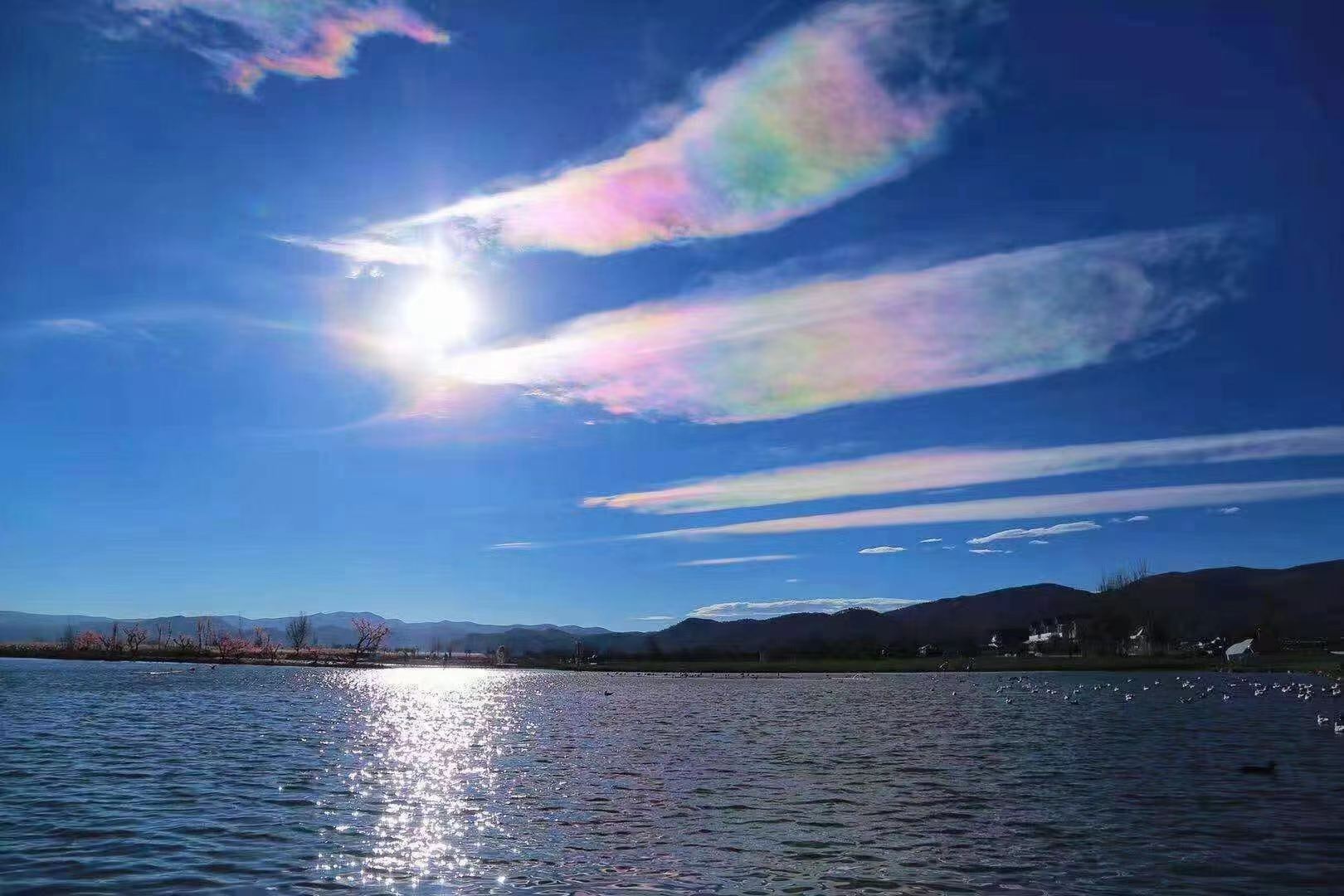 更別說(shuō)麗江在最近一段時(shí)間頻繁收到的天空情書(shū)了——形態(tài)飄逸靈動(dòng),色彩艷麗綺幻的云朵讓每一個(gè)麗江人驚呼七彩祥云現(xiàn)世,后面的日子定然可以平安順?biāo)臁S谑桥笥讶锆偪褶D(zhuǎn)發(fā)的視頻圖片就像是菩提樹(shù)上掛著的一個(gè)個(gè)小紅簽,承載著大家美好的祈愿。