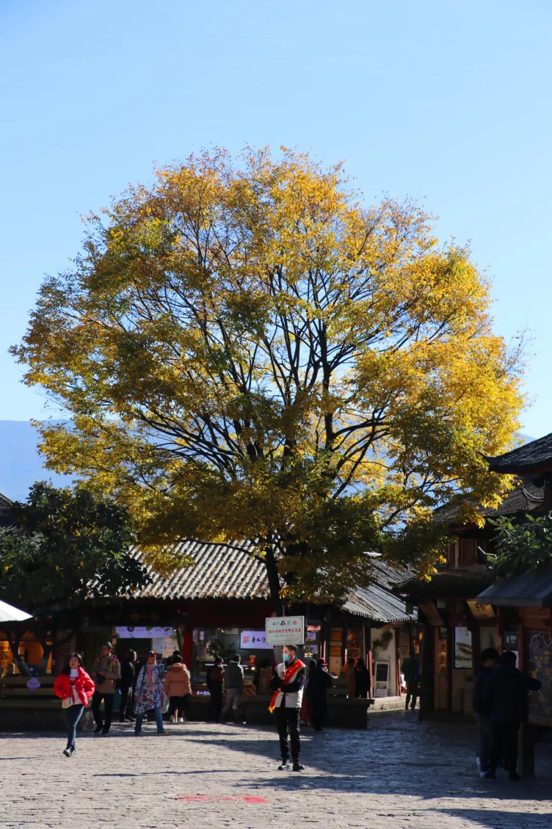 這名字乍一聽,很多人想到的都是唱《平凡之路》《那些花兒》的樸樹,實(shí)際上樸樹確確實(shí)實(shí)是一種樹。這個(gè)時(shí)節(jié),麗江古城里的樸樹也已換上“小黃裙”,到了最佳觀賞期。