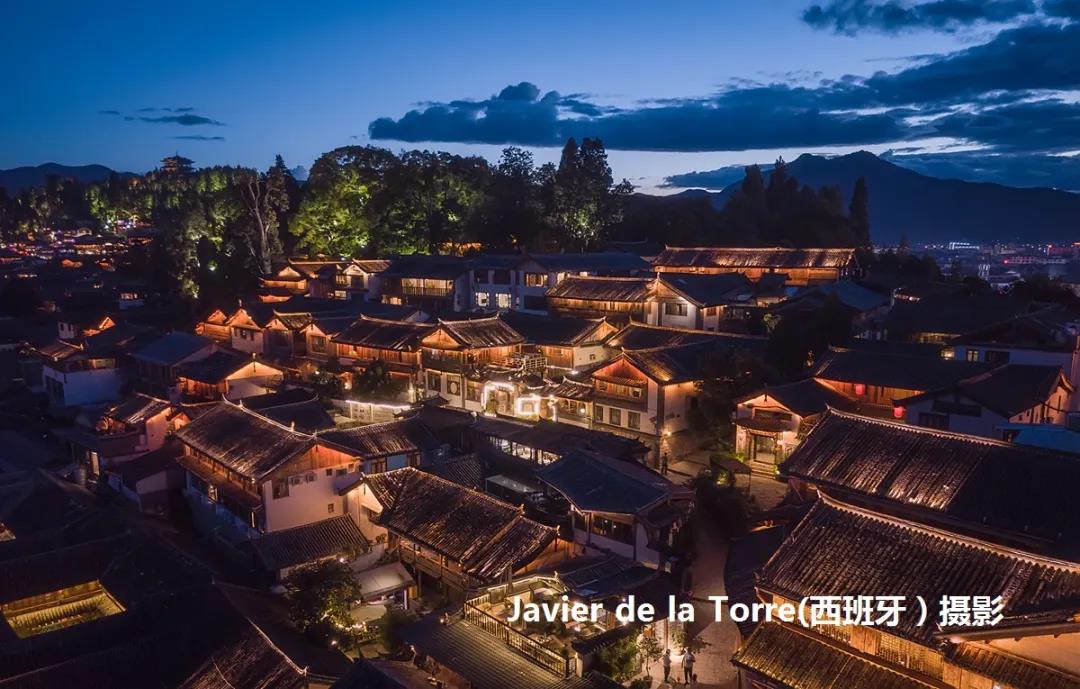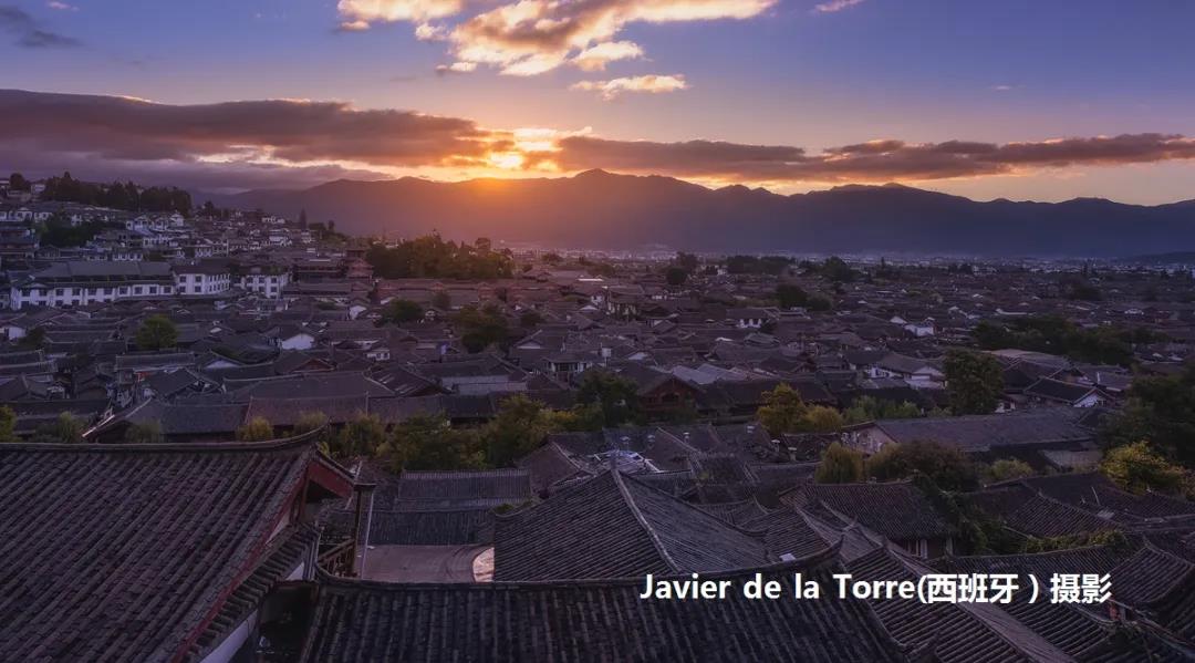 日漸西移,倦鳥知還,麗江古城進(jìn)入了另外一個(gè)華美的世界。滿天的晚霞,像是給這座古城披上了一層金紗,夜晚來臨之前的時(shí)刻,明與暗的光影交錯(cuò),似真似幻。