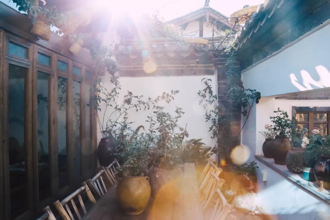 這時(shí)候的天空就像被一瓶打翻的藍(lán)墨水暈染開來一般,碧空如洗,天高云淡,眺望遠(yuǎn)方時(shí),還可以看見高聳入云的玉龍雪山。