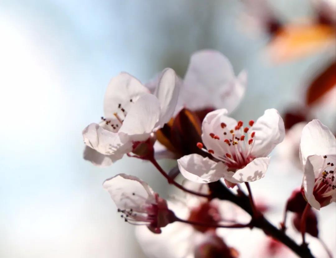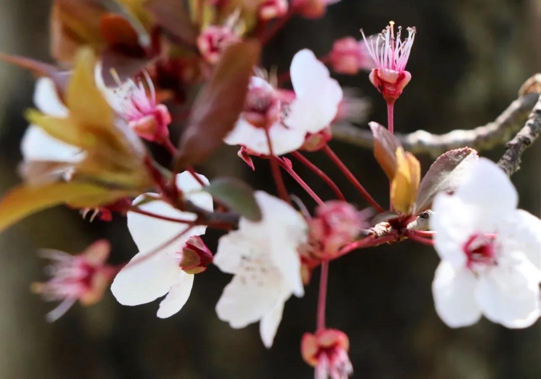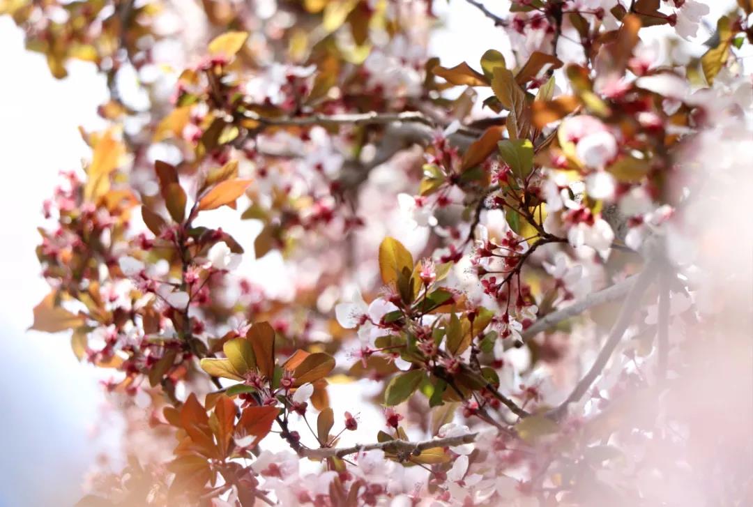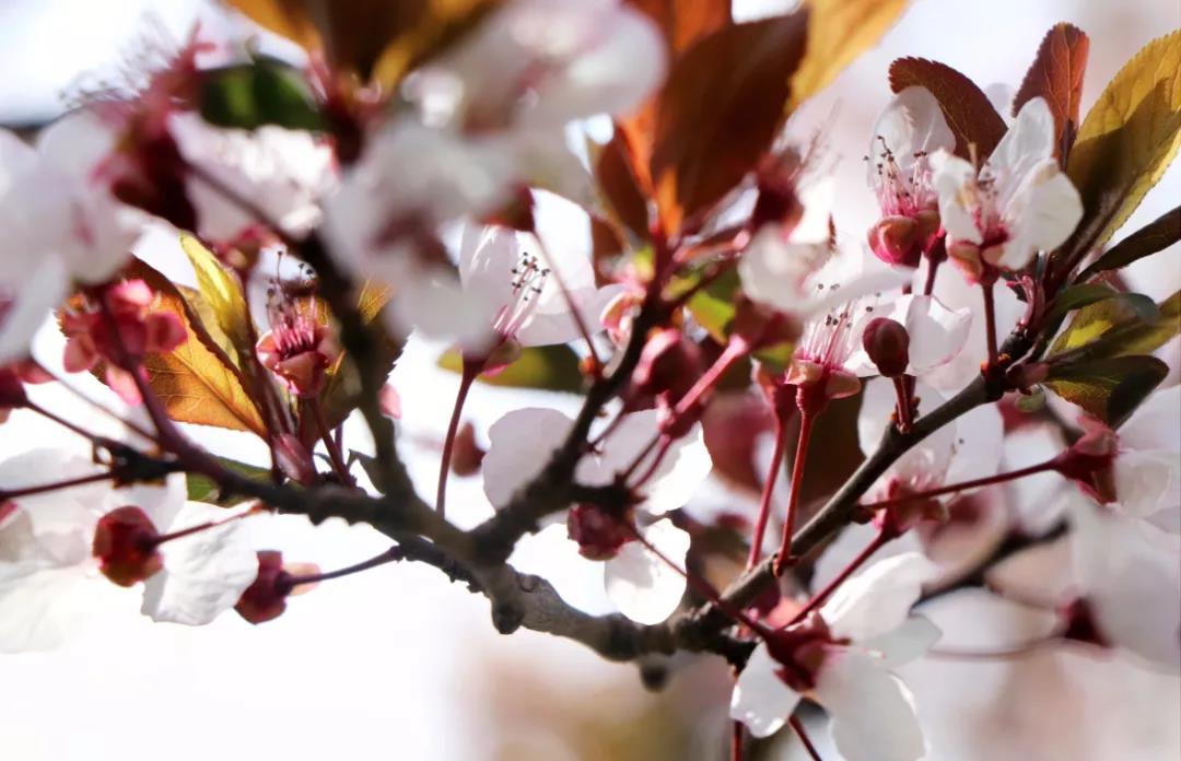 潔白的花瓣裹著淡粉色的花蕊,綴滿枝丫,如幾分冰雪寒白梅,似若許春里俏桃花,減抹三分桃俏麗,褪去兩分梅孤傲,簡(jiǎn)潔淡然的恰恰好~