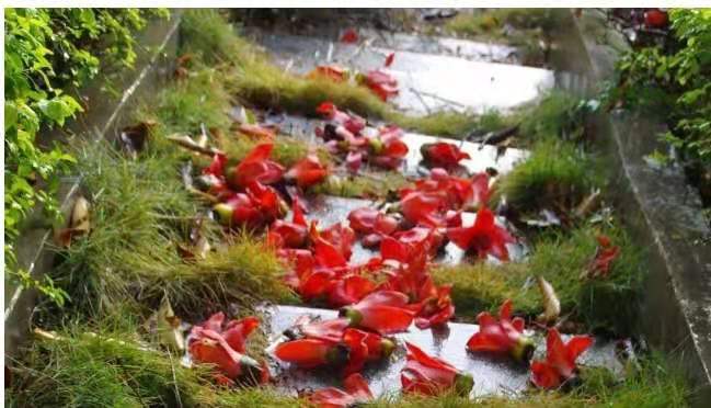 有人贊木棉是英雄樹(shù),是君子花。除其蒼勁昂揚(yáng)、筆直偉岸的身軀外,大概也因其花開(kāi)得熱烈,落得也壯烈?;ㄆ谝贿^(guò),木棉花絕然落土。樹(shù)下落紅無(wú)數(shù),但花不褪色、不萎靡,依然保持著在枝頭的形色,不容半點(diǎn)凋零。當(dāng)代詩(shī)人舒婷也為之贊嘆。